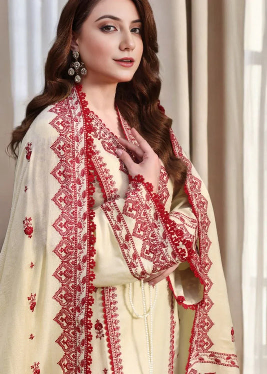 Women’s Cream Embroidered 3-Piece Linen Kurta Set T