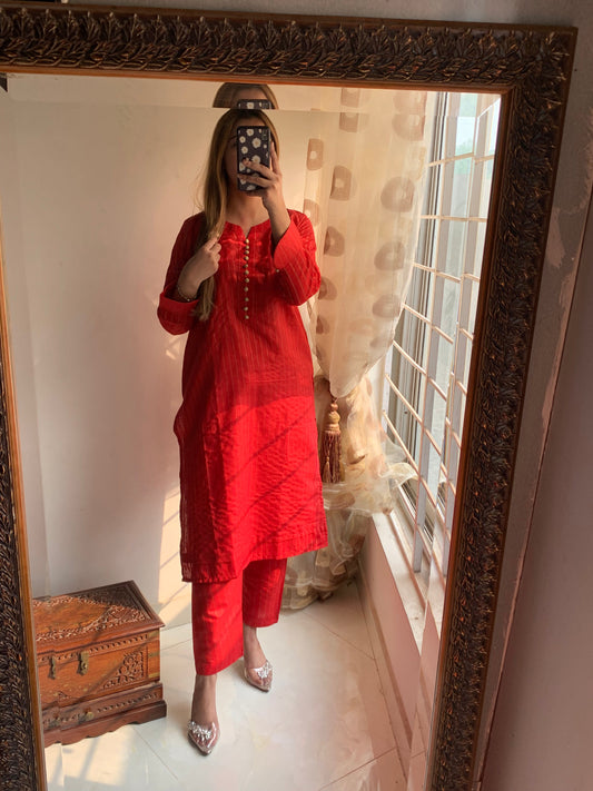 Red Embroidery Suit for Women β 3PC Linen Kurta Set