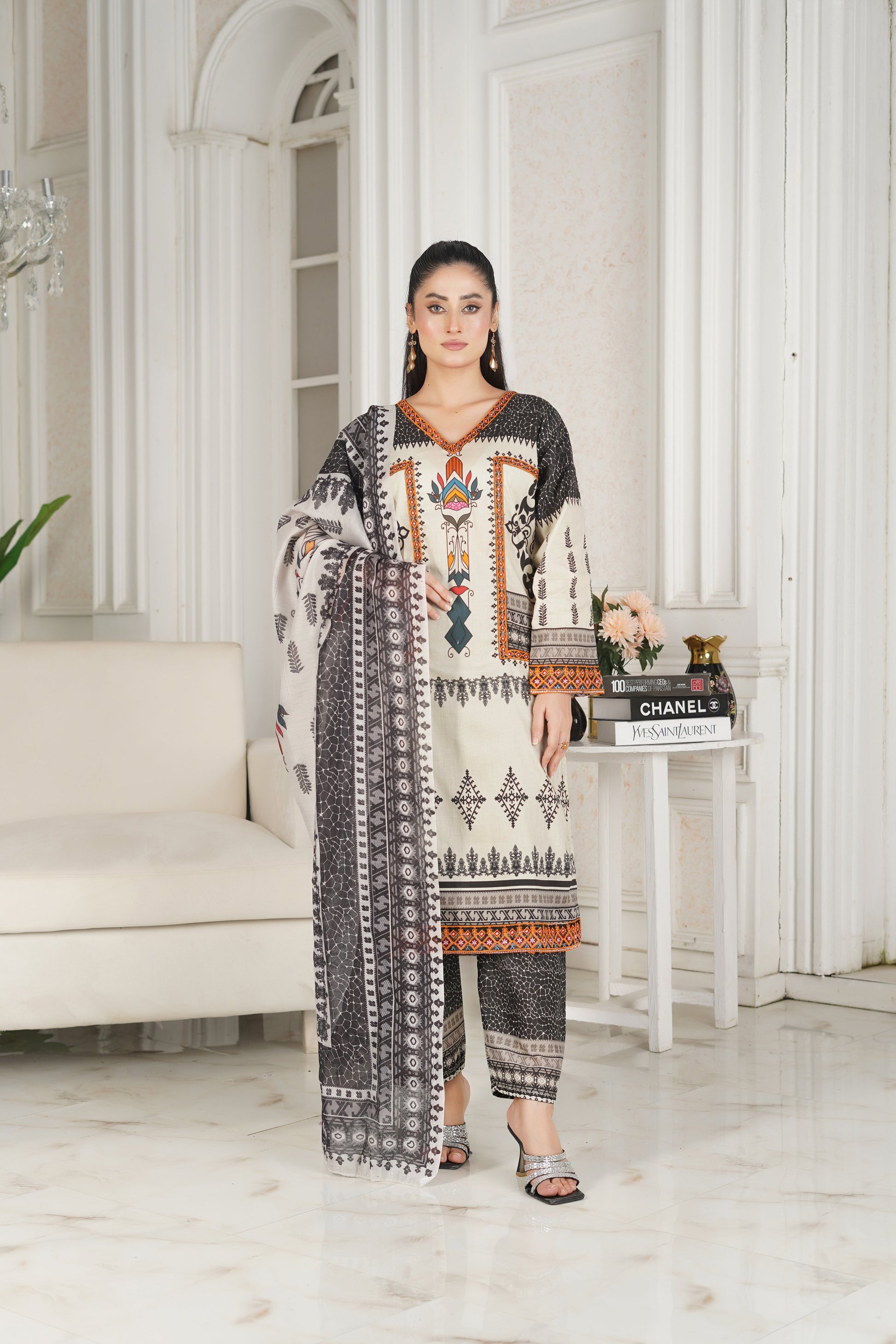Our fabric is crafted from 100% pure cotton lawn, celebrated for its lightweight, breathable, and luxuriously soft nature. With its fine, smooth texture and graceful drape, this fabric offers effortless elegance while ensuring all-day comfort. Designed to keep you cool and fresh in warm weather, it blends timeless sophistication with natural ease, making it a perfect choice for both everyday wear and special occasions.